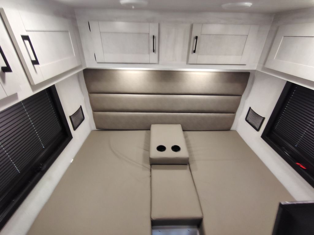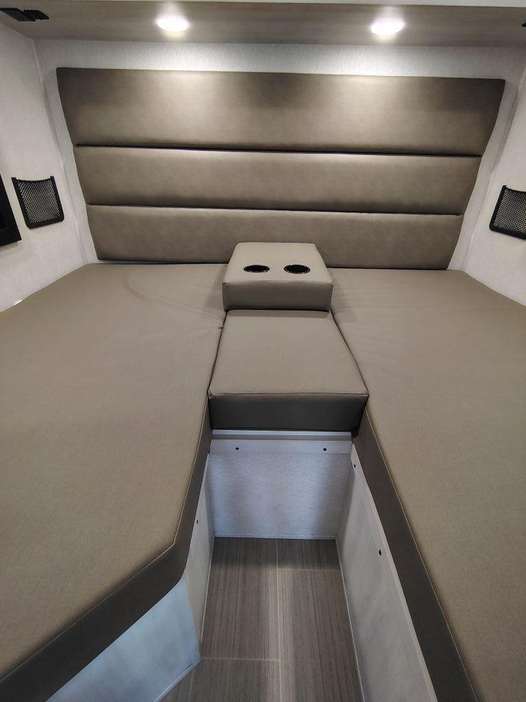 - Sleeping capacity: Sleeps 3–4 people, with a cab-over bunk and twin beds that convert to a king bed in the rear.