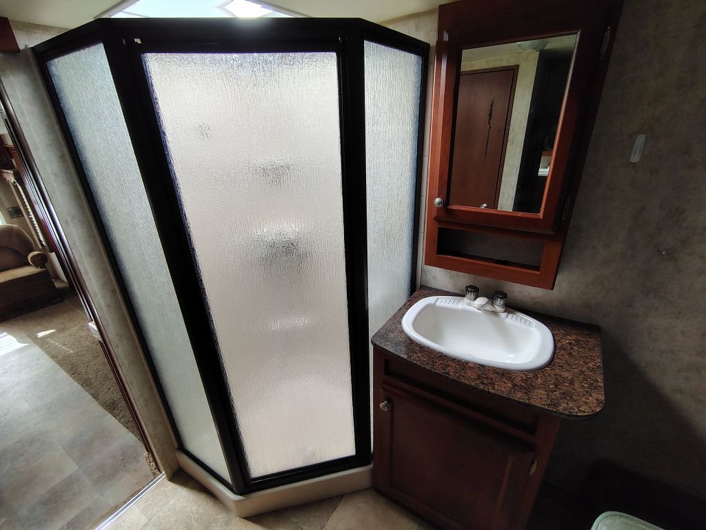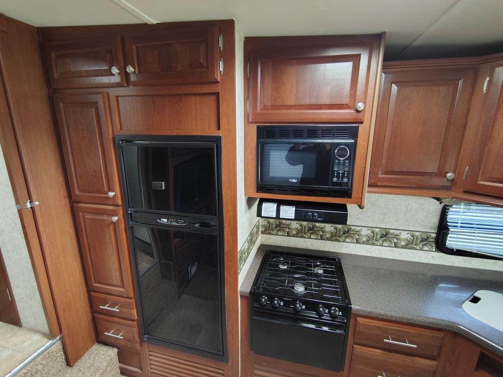 - Exterior: Patio awning, front and rear leveling jacks (front power, rear power)